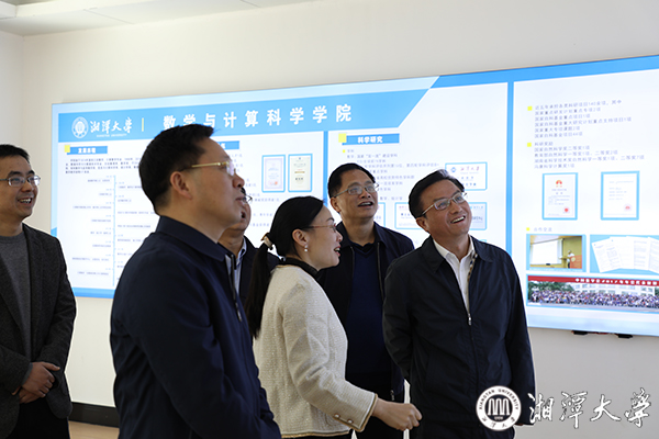 调研组一行来校考察参观了学校毛泽东铜像广场、智能碳材料与先进传感湖南省重点实验室、党内法规研究中心,详细听取国家“双一流”建设学科数学学科的建设情况汇报,并对校党委书记、校长进行了深入访谈。