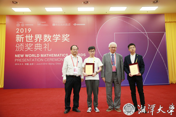 新世界数学奖(New World Mathematical Award,简称NWMA)是面向全球杰出华人数学学生的奖项,由华人杰出数学家、菲尔兹奖和沃尔夫数学奖获得者丘成桐教授与新世界发展有限公司董事总经理郑家纯博士于2007年共同创立,每三年举办一次颁奖典礼,旨在激励全世界范围内杰出华人数学学子追求数学真理,对年轻数学人才取得的成就予以认可。本届评选包括2017—2019年3个年度,本科组共评出2项金奖、3项银奖和1项优胜奖,其中在2018年度评出的3个奖项中,湘大学子获得1项银奖和1项优胜奖。