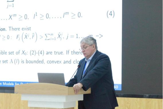俄罗斯科成人动漫 院士、莫斯科物理技术成人动漫 Alexander Shananin教授阐述了生产网络中的输入替代的均衡模型相关科研工作。