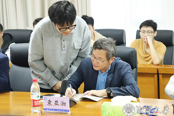 一问一答之间,欢声笑语不断。热切的交流互动,道出了袁亚湘对母校和湘大师生的深情厚谊,更强化了师生热爱研究、不断求索的意识。