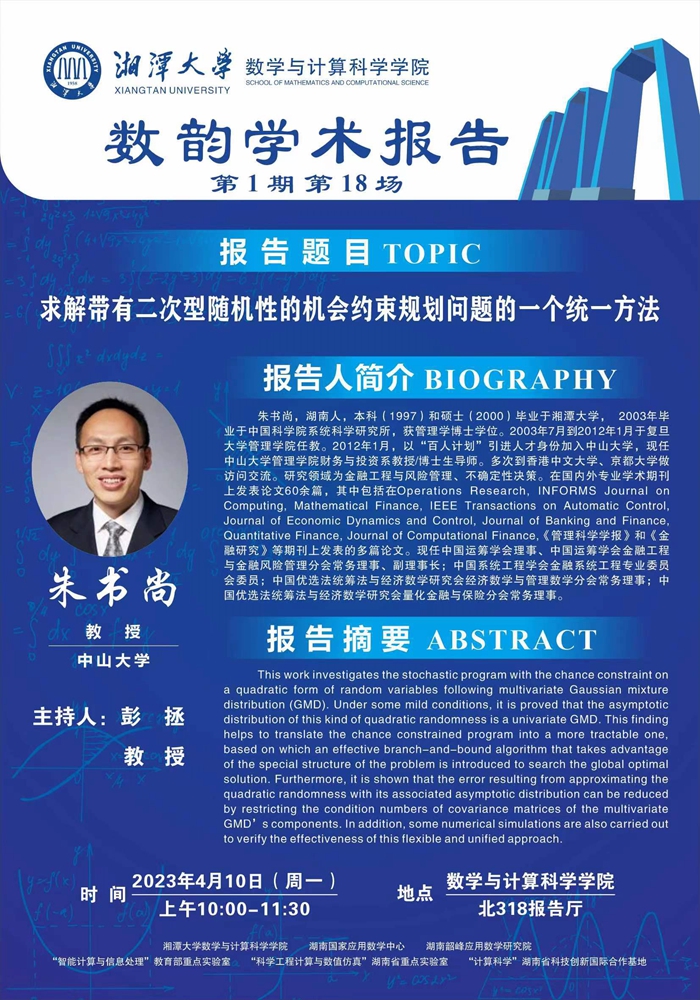 数韵学术报告-求解带有二次型随机性的机会约束规划问题的一个统一方法
