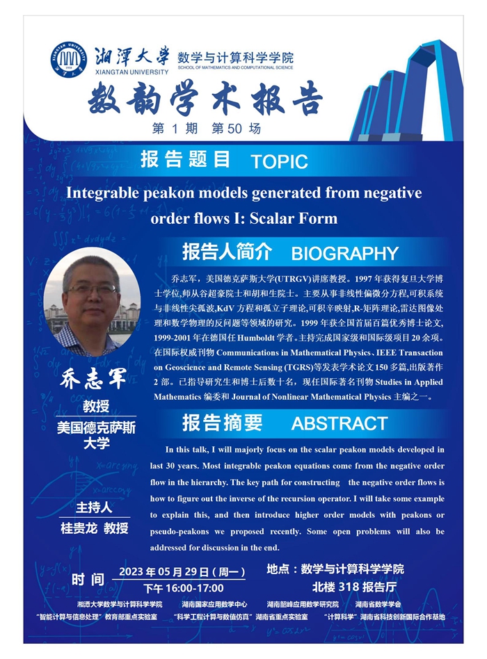 数韵学术报告-Integrable peakon models generated from negative order flows I: Scalar Form
