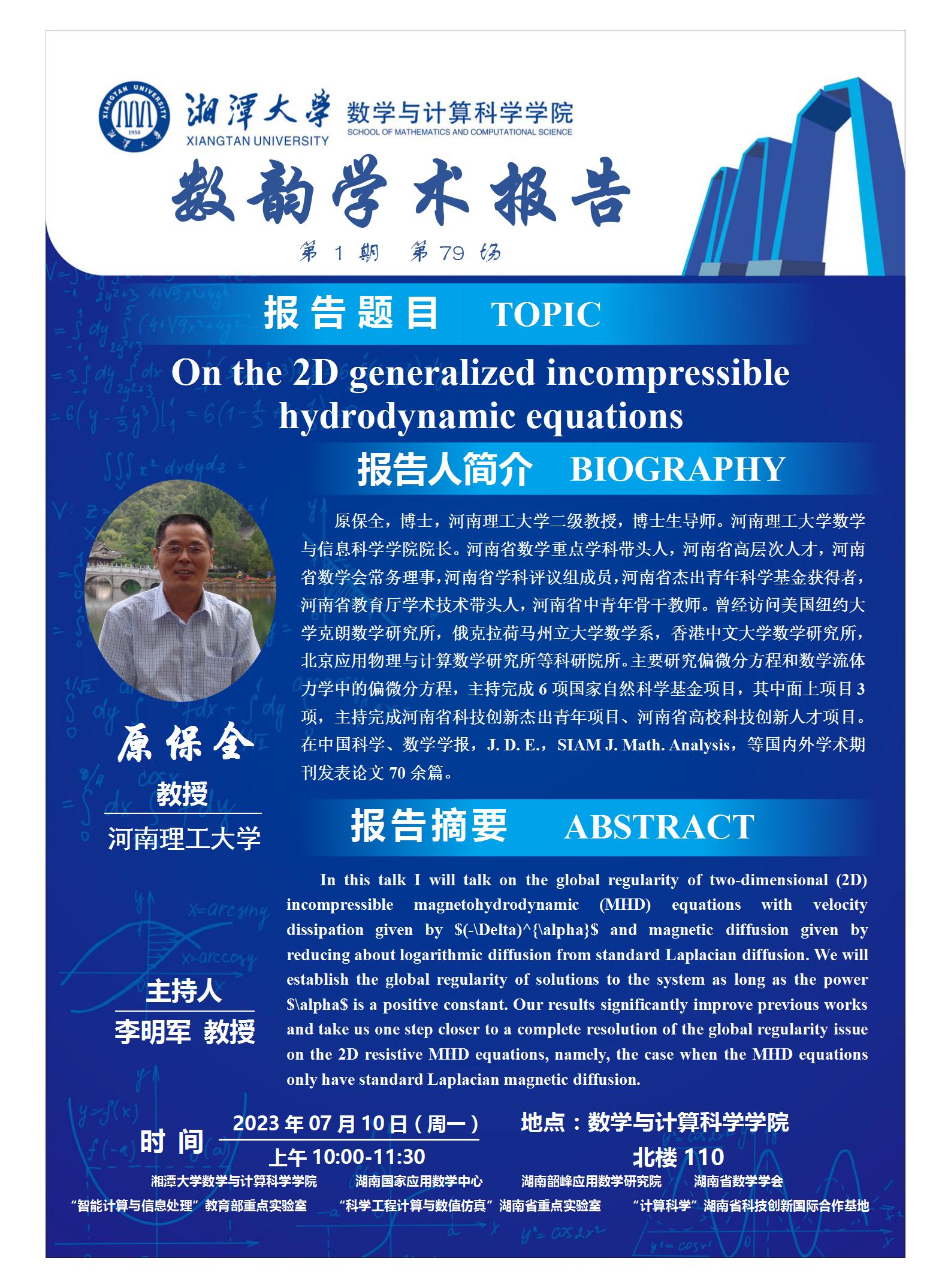 数韵学术报告-On the 2D generalized incompressible magnetohydrodynamic equations