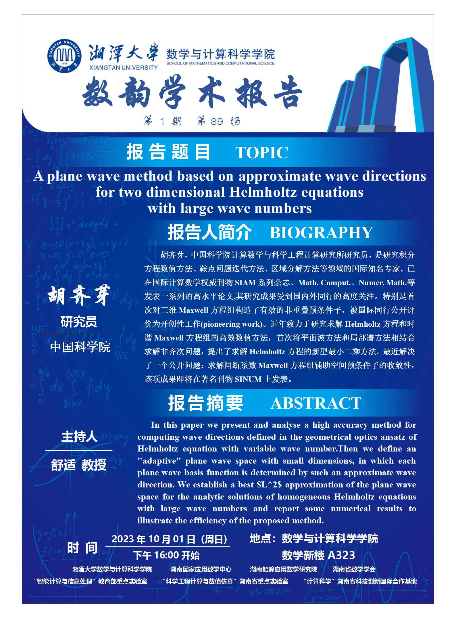 数韵学术报告-A plane wave method based on approximate wave directions for two dimensional Helmholtz equations with large wave numbers