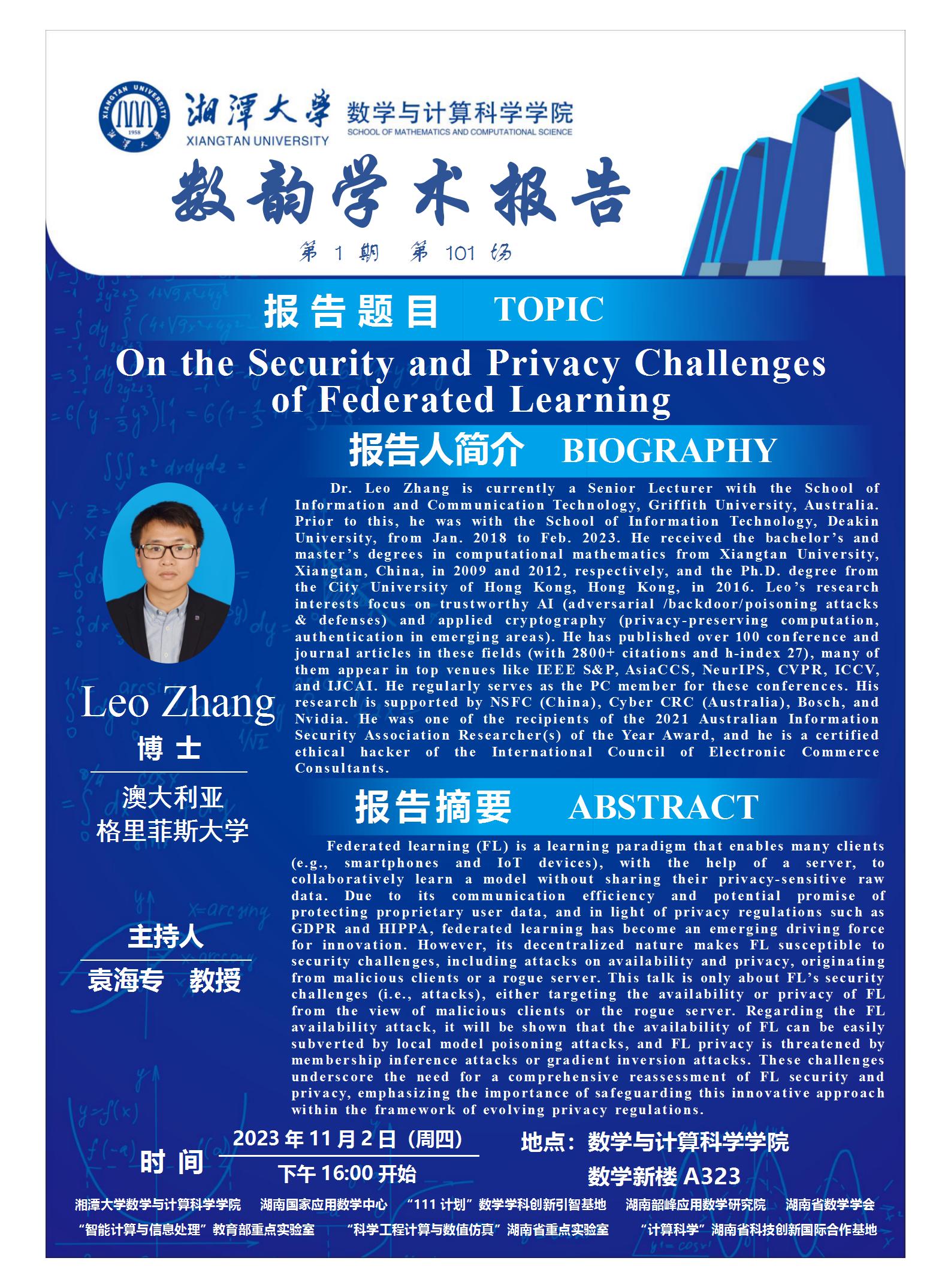 数韵学术报告-On the Security and Privacy Challenges of Federated Learning
