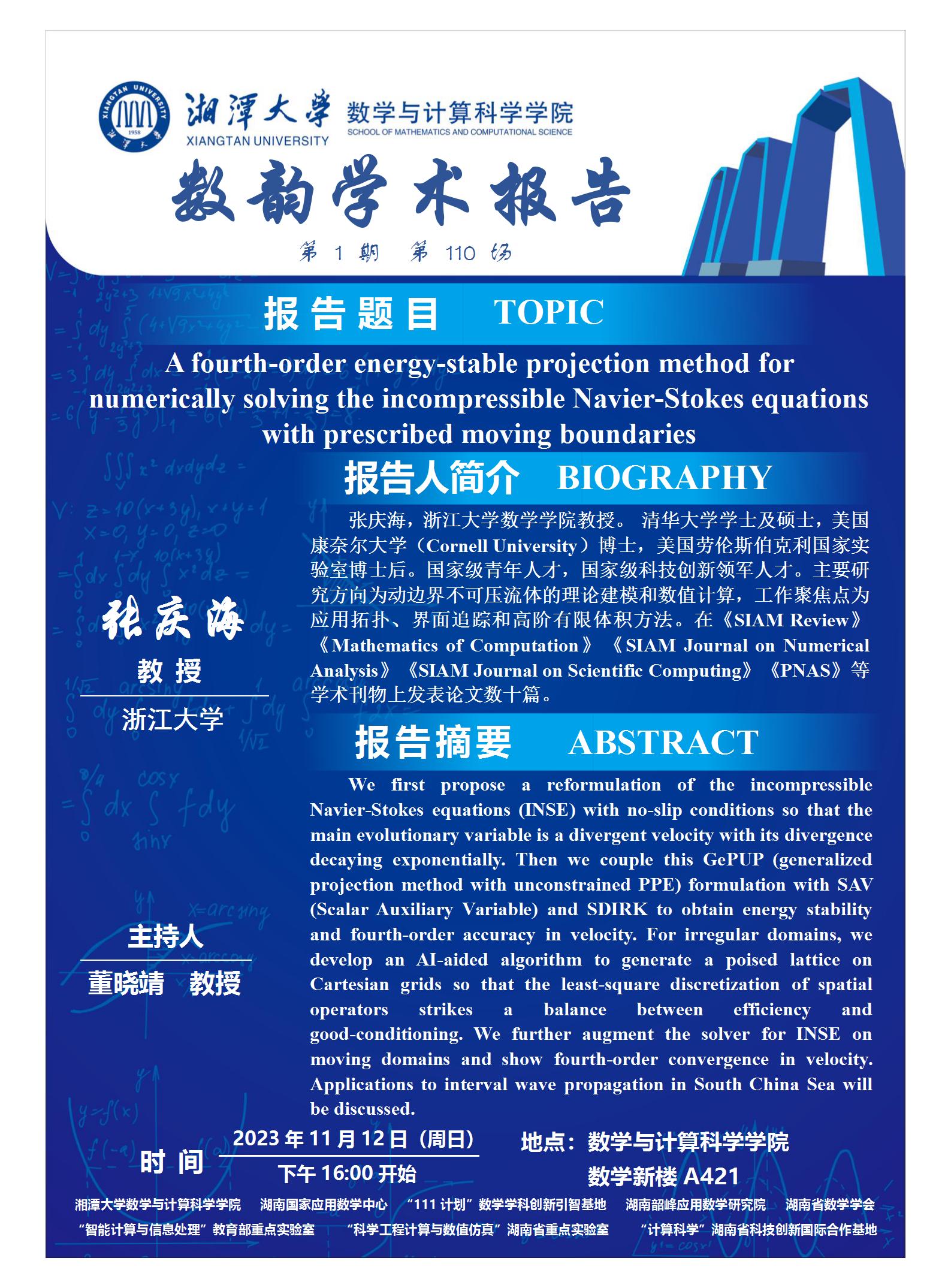 数韵学术报告- A fourth-order energy-stable projection method for numerically solving the incompressible Navier-Stokes equations with prescribed moving boundaries