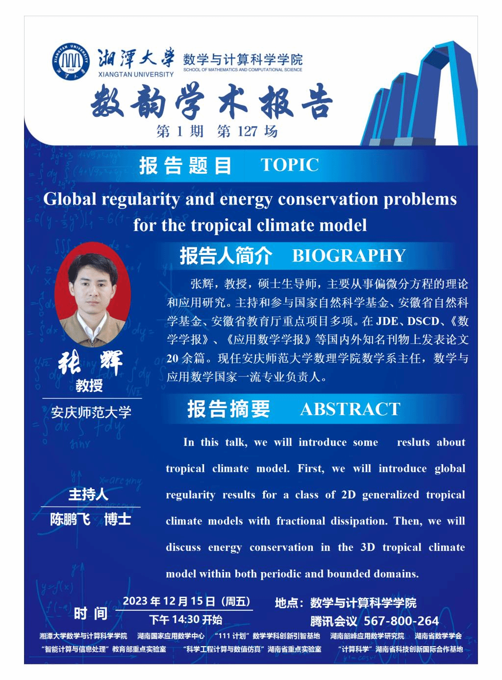 数韵学术报告-Global regularity and energy conservation problems for the tropical climate model