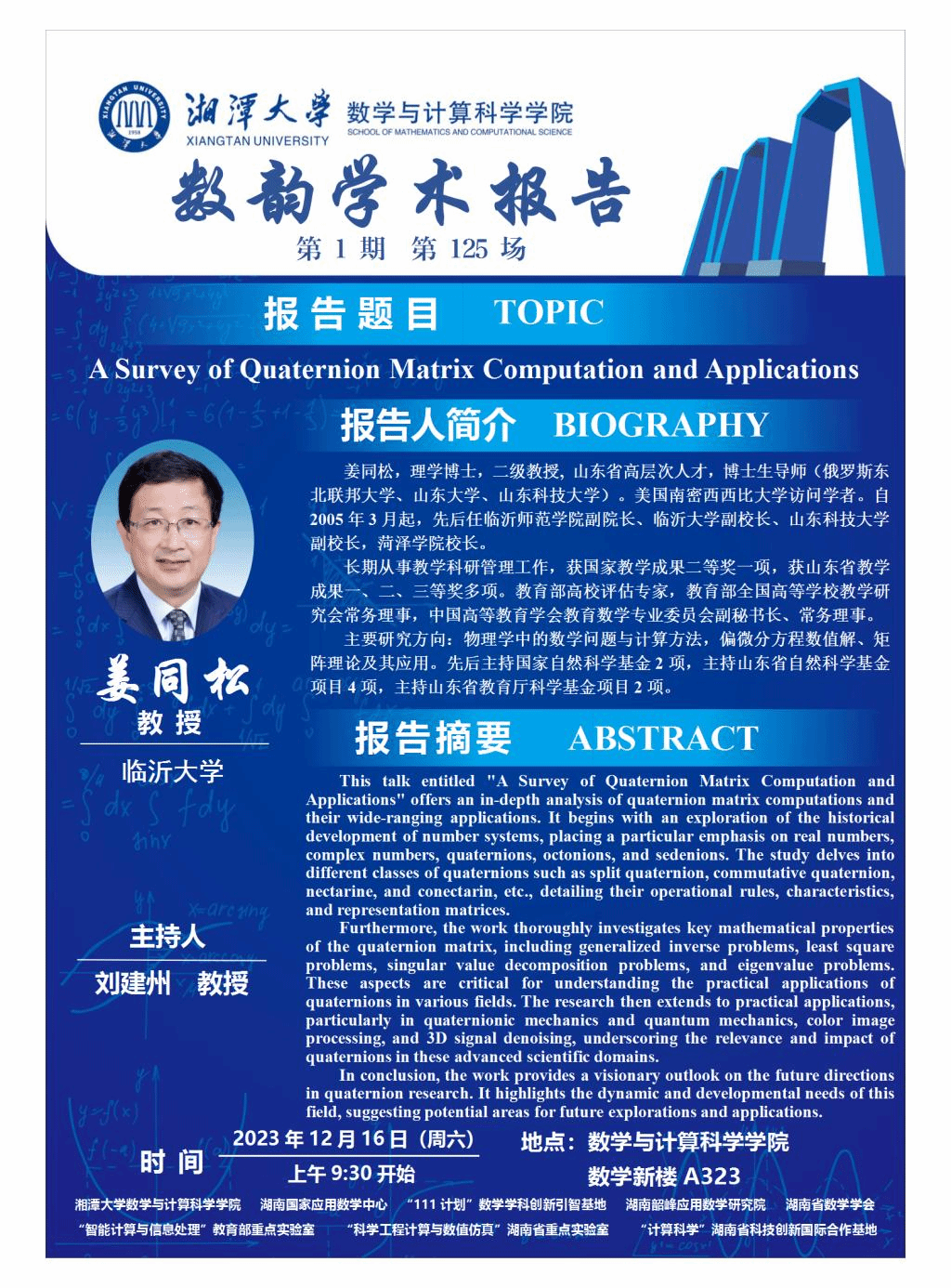 数韵学术报告-A Survey of Quaternion Matrix Computation and Applications