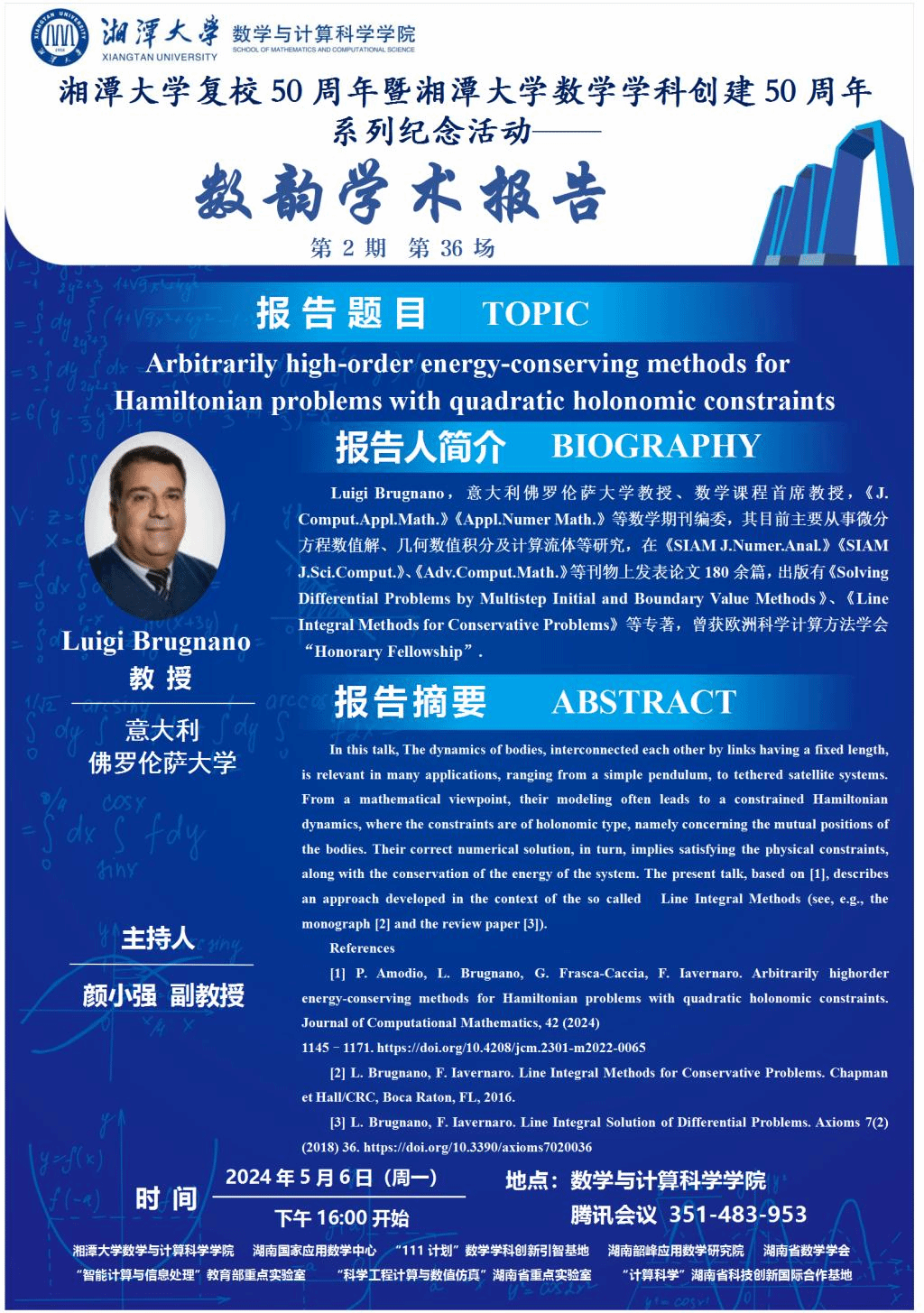 数韵学术报告-Arbitrarily high-order energy-conserving methods for Hamiltonian problems with quadratic holonomic constraints