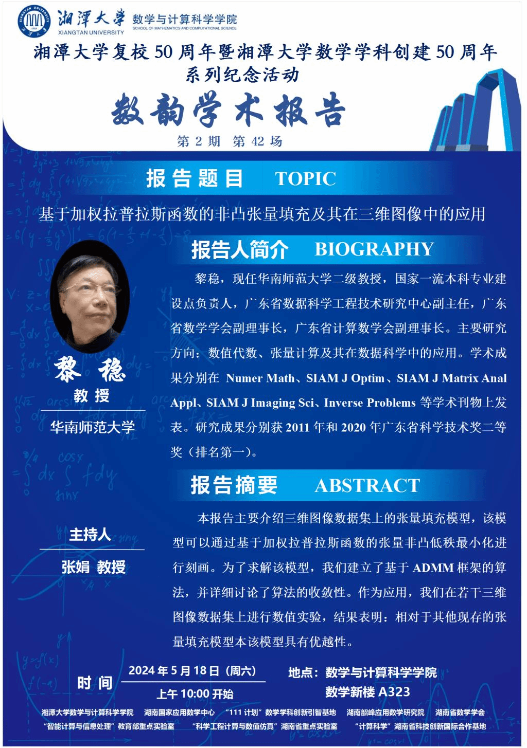 数韵学术报告-基于加权拉普拉斯函数的非凸张量填充及其在三维图像中的应用