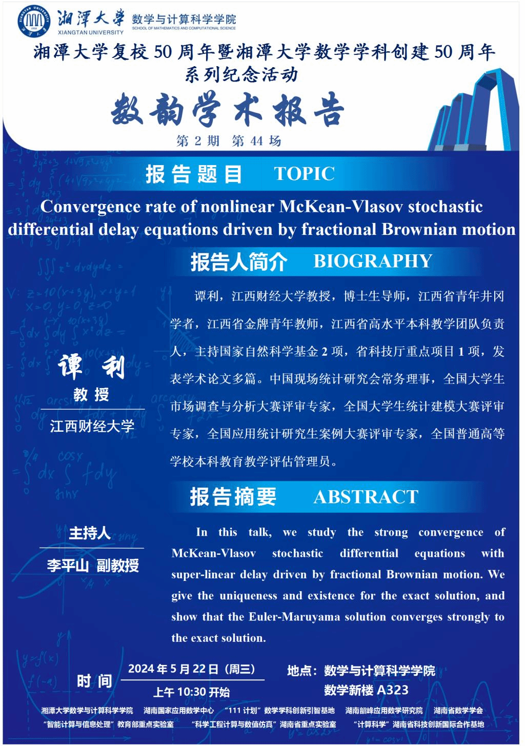 数韵学术报告-Convergence rate of nonlinear McKean-Vlasov stochastic differential delay equations driven by fractional Brownian motion