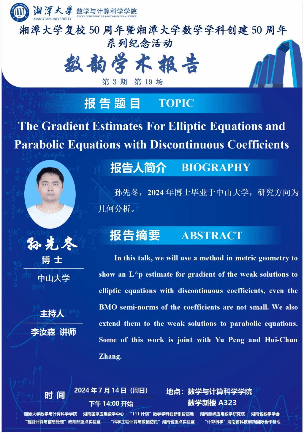 数韵学术报告-The Gradient Estimates For Elliptic Equations and Parabolic Equations with Discontinuous Coefficients