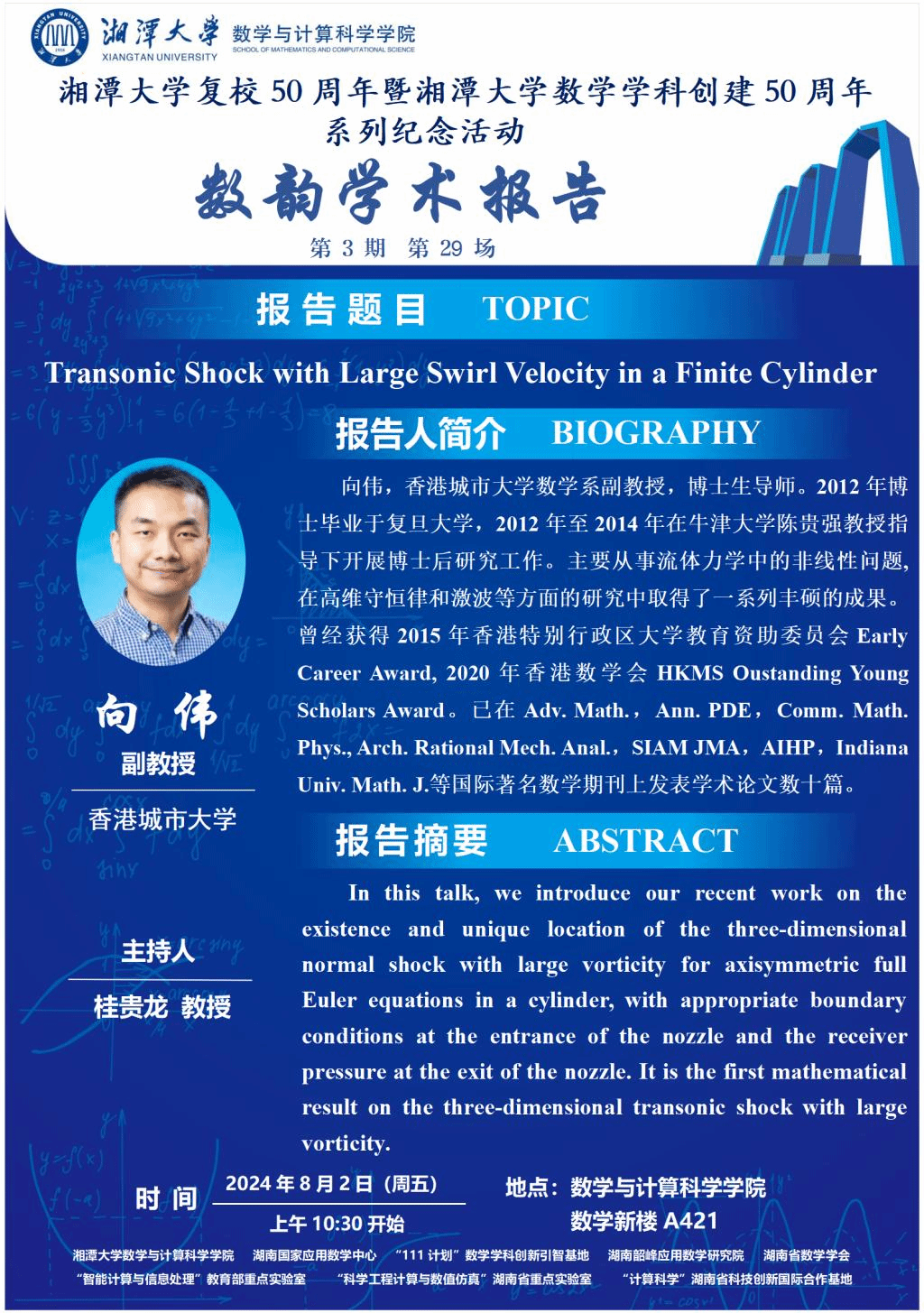 数韵学术报告-Transonic Shock with Large Swirl Velocity in a Finite Cylinder