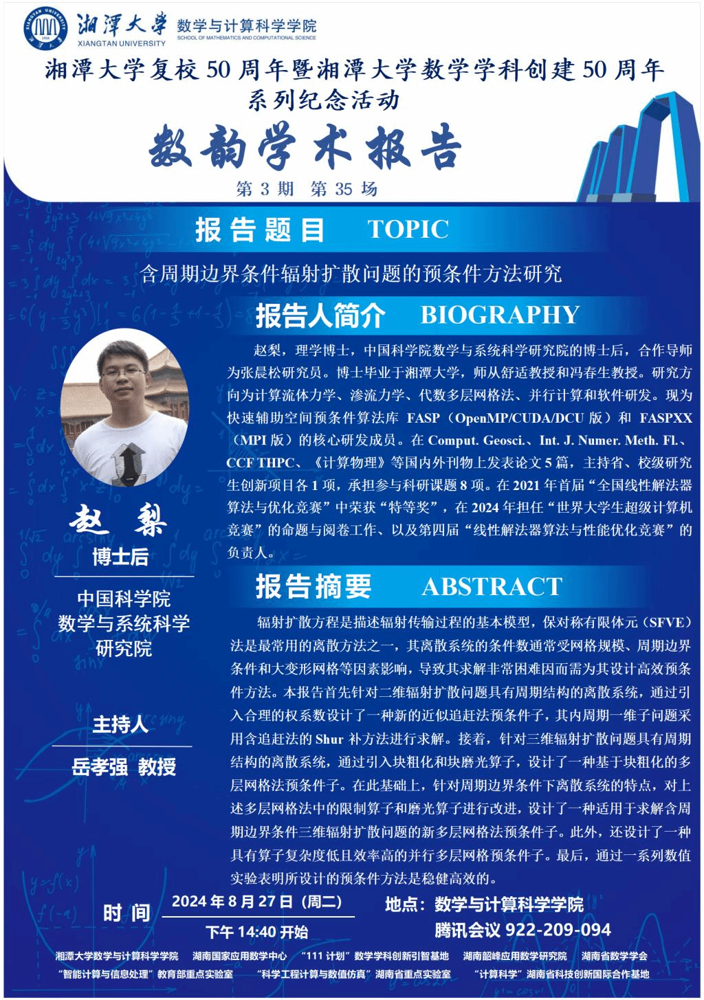 数韵学术报告-含周期边界条件辐射扩散问题的预条件方法研究