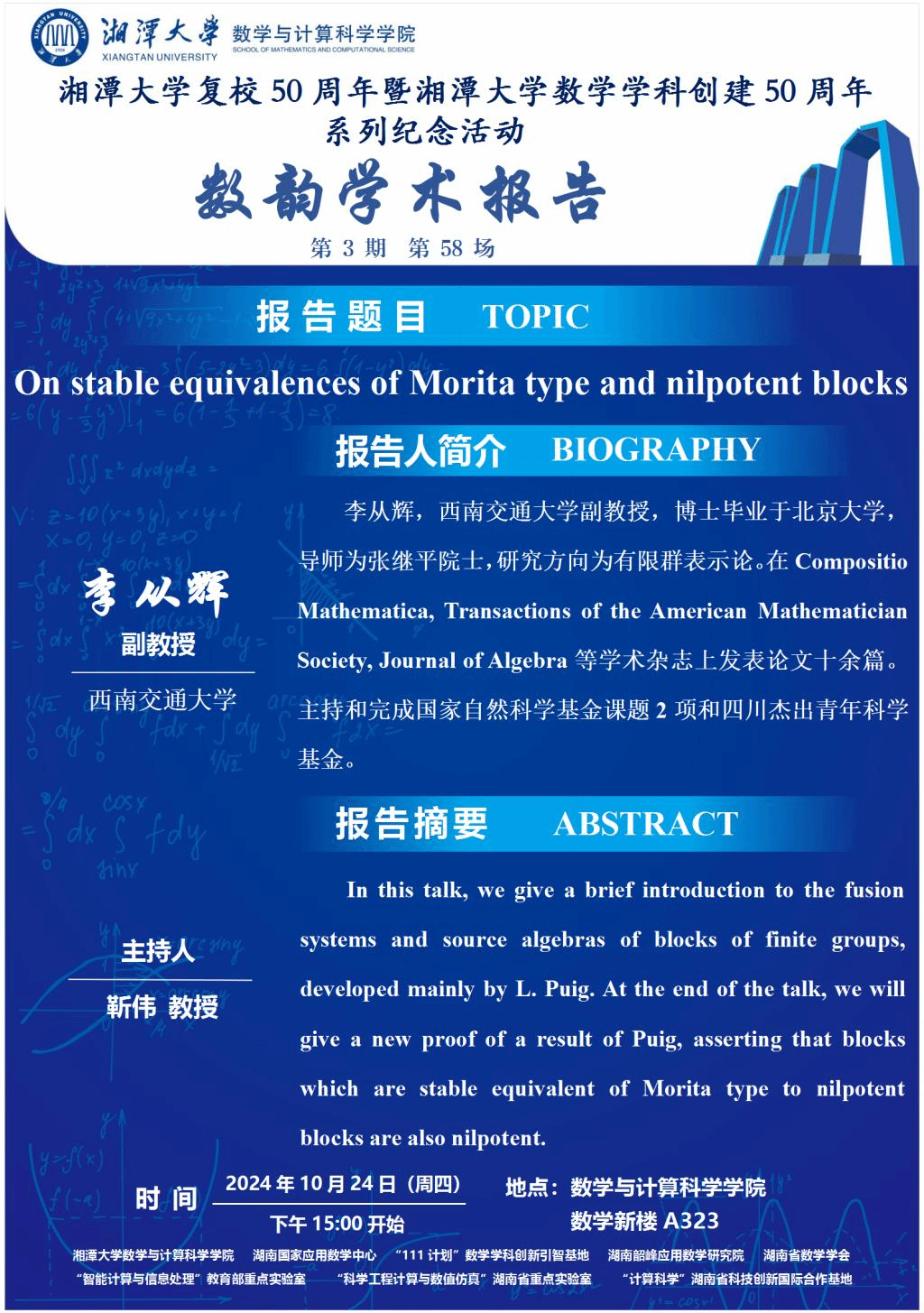 数韵学术报告-On stable equivalences of Morita type and nilpotent blocks