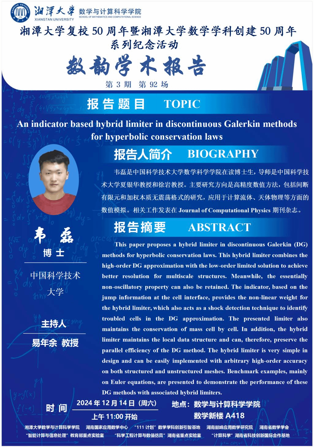 数韵学术报告-An indicator based hybrid limiter in discontinuous Galerkin methods for hyperbolic conservation laws