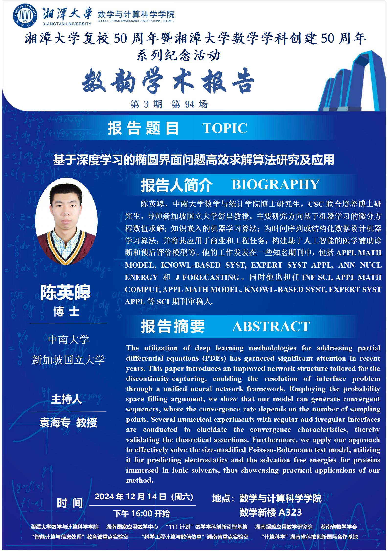 数韵学术报告-基于深度学习的椭圆界面问题高效求解算法研究及应用