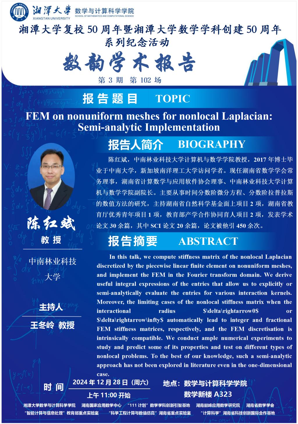 数韵学术报告-FEM on nonuniform meshes for nonlocal Laplacian:Semi-analytic Implementation