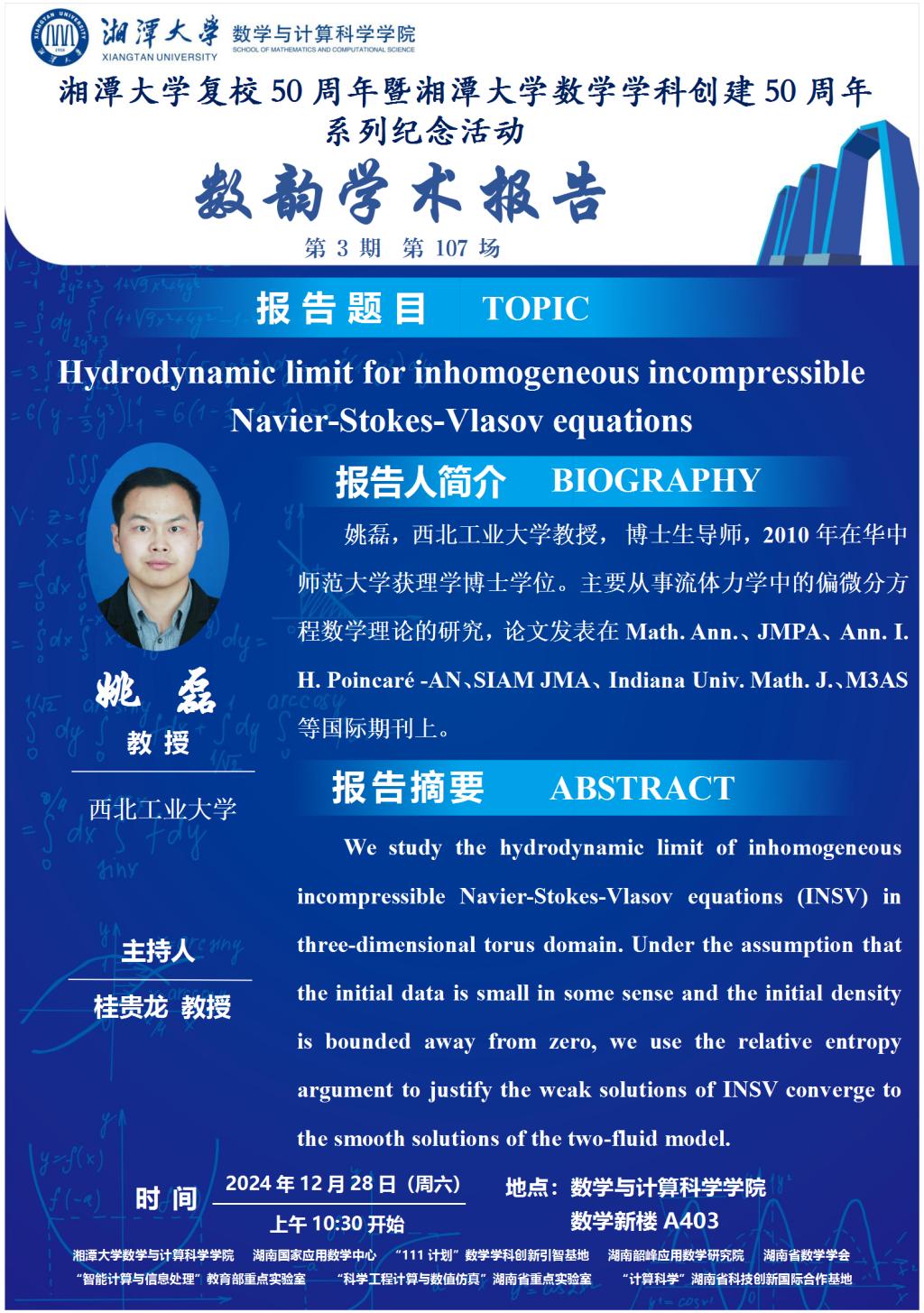 数韵学术报告-Hydrodynamic limit for inhomogeneous incompressible Navier-Stokes-Vlasov equations
