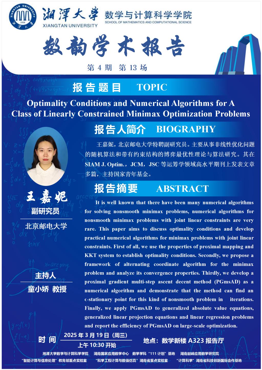 数韵学术报告-Optimality Conditions and Numerical Algorithms for A Class of Linearly Constrained Minimax Optimization Problems