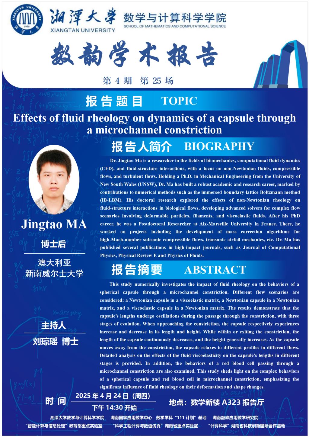 数韵学术报告-Effects of fluid rheology on dynamics of a capsule through a microchannel constriction
