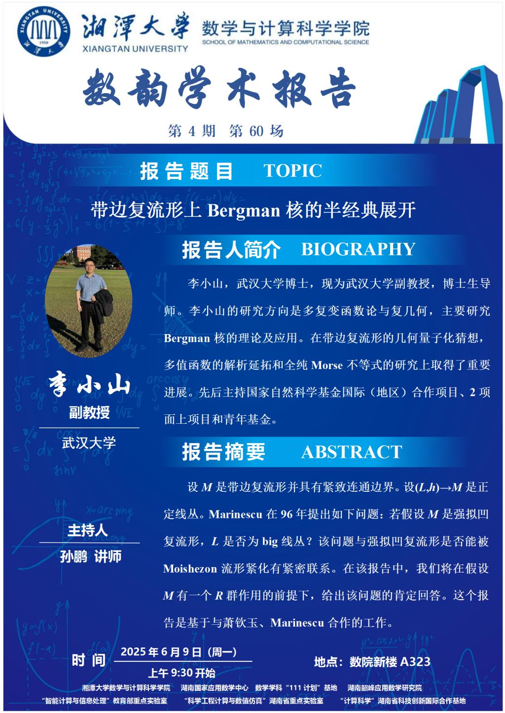 数韵学术报告-带边复流形上Bergman核的半经典展开