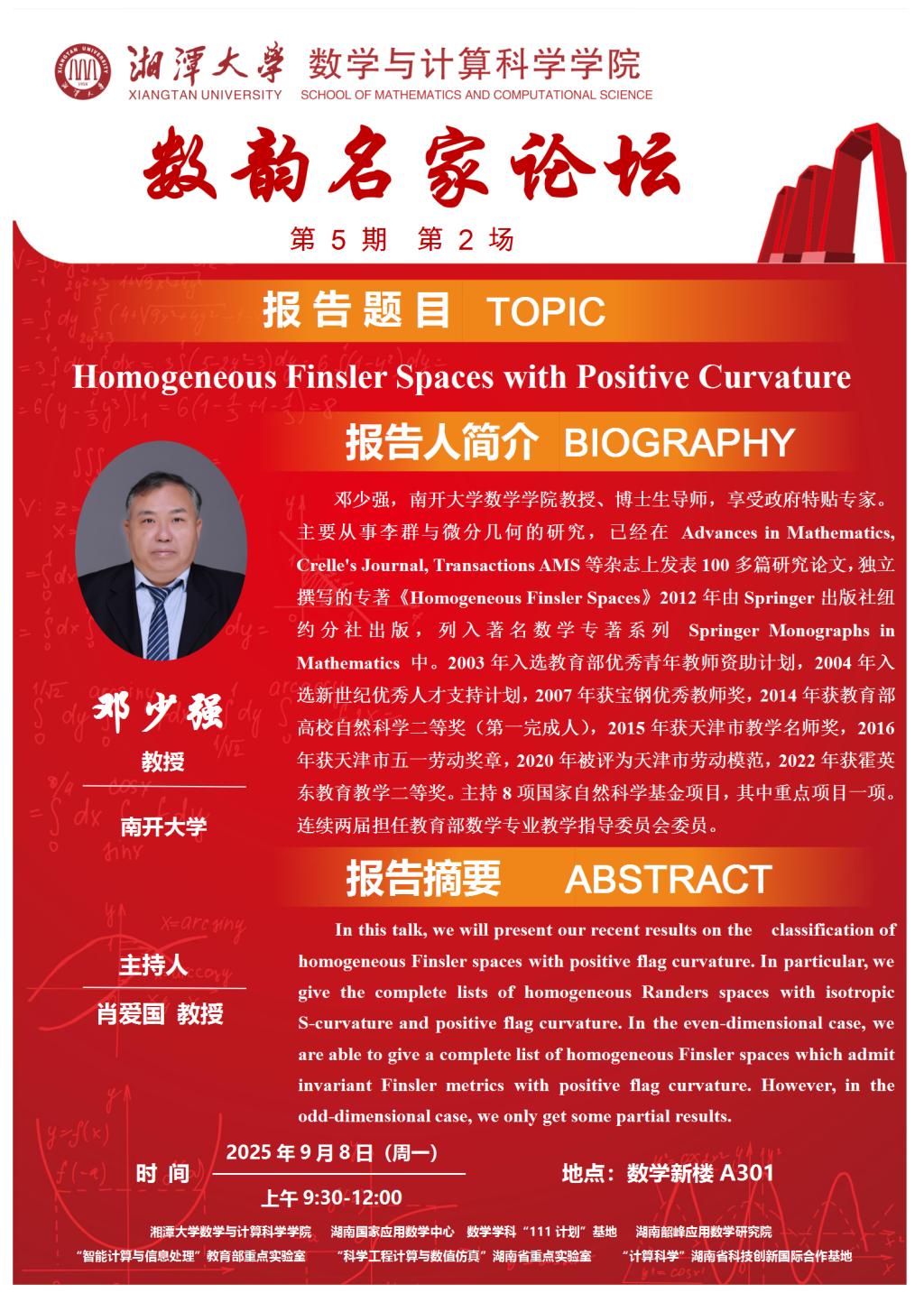 数韵名家论坛-Homogeneous Finsler Spaces with Positive Curvature