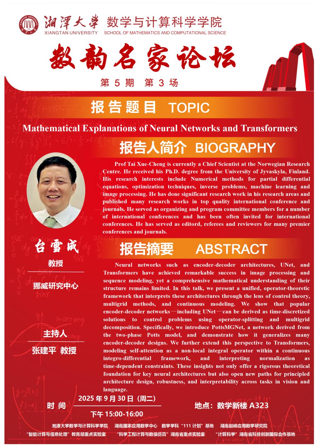 数韵名家论坛-Mathematical Explanations of Neural Networks and Transformers