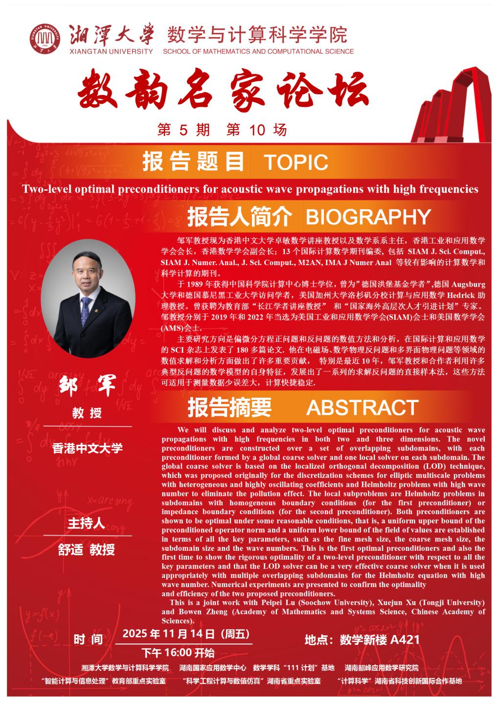数韵名家论坛-Two-level optimal preconditioners for acoustic wave propagations with high frequencies