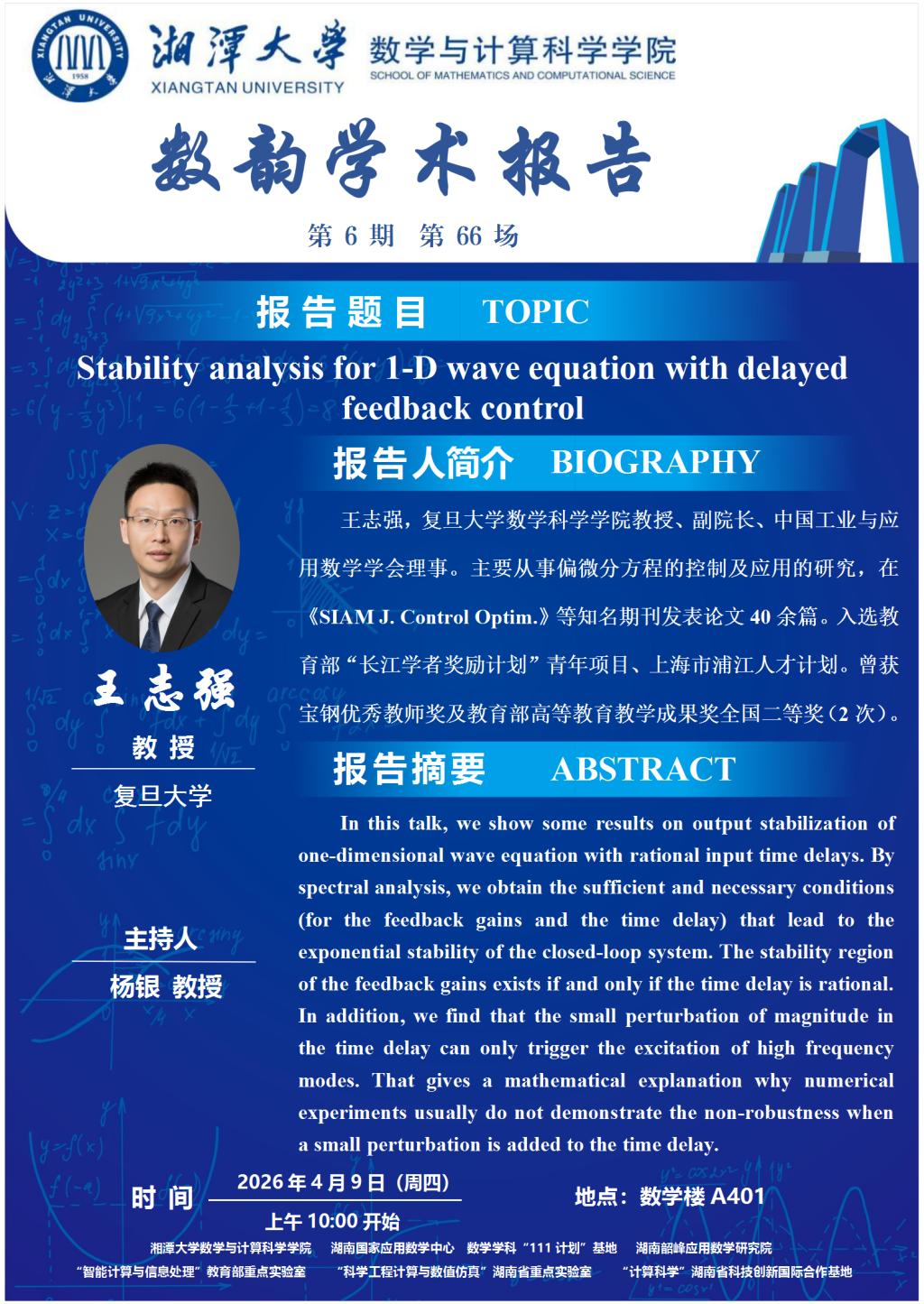 数韵学术报告—王志强—Stability analysis for 1-D wave equation with delayed feedback control